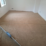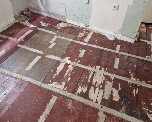 Der vorhandene Untergrund war uneben und wies Höhenunterschiede auf, die eine direkte Verlegung eines neuen Bodenbelags nicht zuließen. Ziel war es, eine stabile und ebene Basis für den neuen Boden zu schaffen.